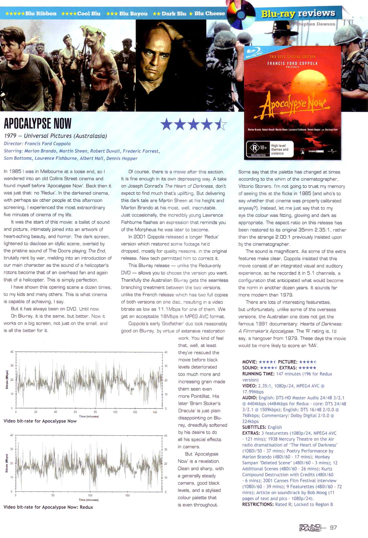 There are lots of interesting featurettes, but unfortunately, unlike some of the overseas versions, the Australian one does not get the famous 1991 documentary: Hearts of Darkness: A Filmmaker's Apocalypse. The 'R' rating is, I'd say, a hangover from 1979. These days the movie would be more likely to score an 'MA'.
