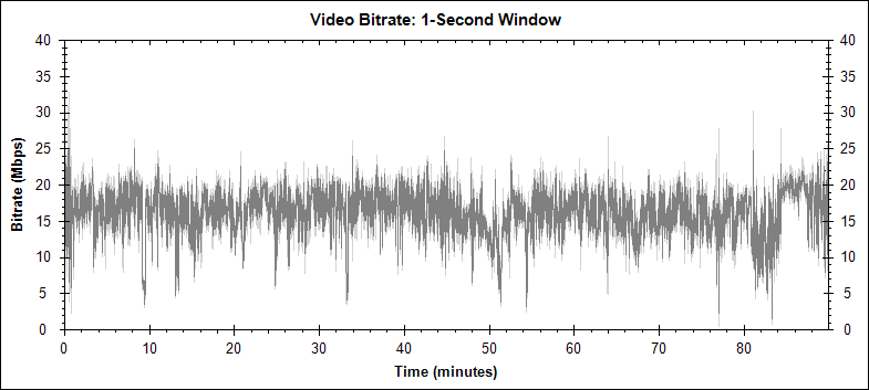 The following video bitrate graph was generated by BDInfo. This is the graph for the main movie stream: