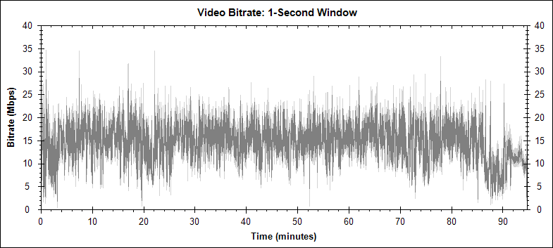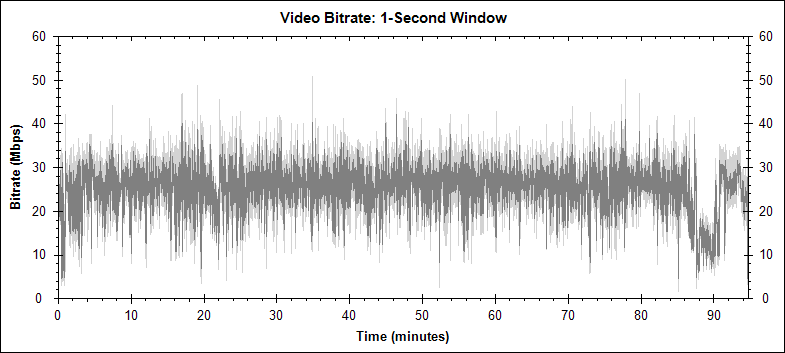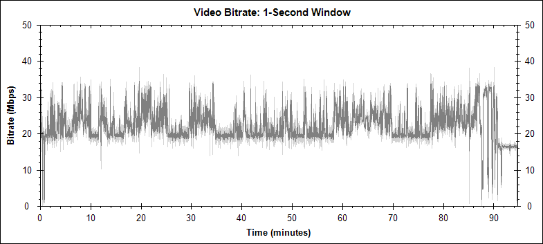 The following video bitrate graphs were generated by BDInfo. This is the graph for the main movie stream: