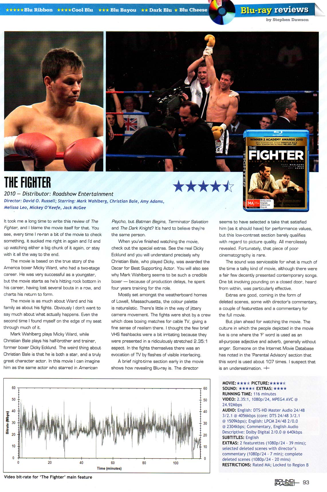 When you've finished watching the movie, check out the special extras. See the real Dicky Ecklund and you will understand precisely why Christian Bale, who played Dicky, was awarded the Oscar for Best Supporting Actor. You will also see why Mark Wahlberg seems to be such a credible boxer: because of production delays, he spent four years training for the role.