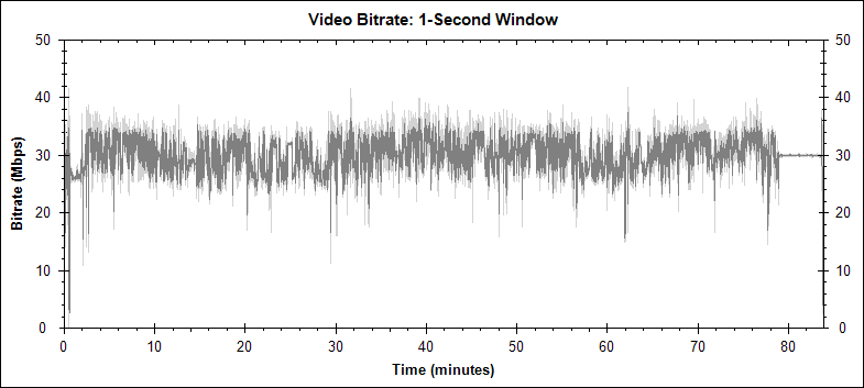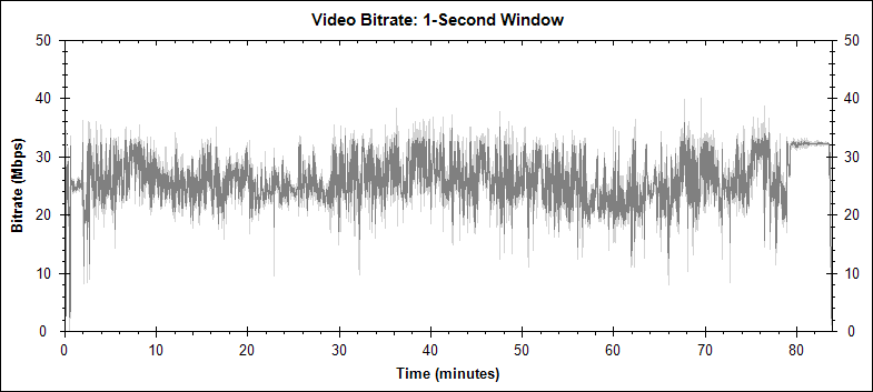 The following video bitrate graphs were generated by BDInfo 0.5.7. This is for the main stream of the 3D version: