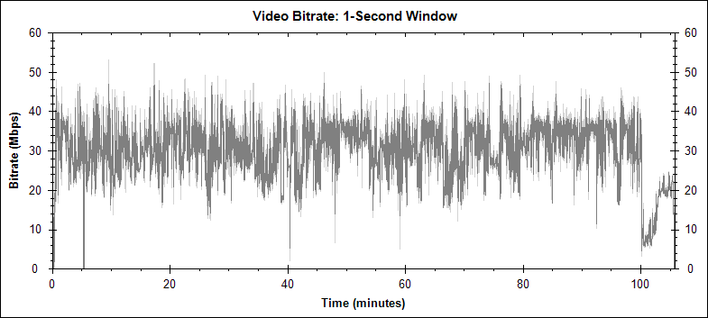 The following video bitrate graph was generated by BDInfo. This is the graph for the main movie stream:
