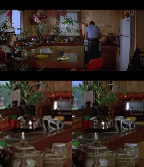 Nothing like a still life to illustrate the difference. With the DVD everything smears into an indistinct mess, whereas each element stands out on the Blu-ray, clear and coherent. Is that a little jar of pickled onions at bottom right?