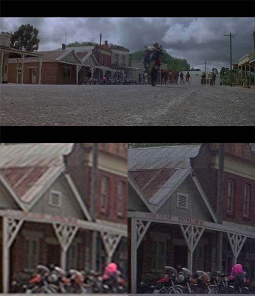 The detail is from that last scaled version, and has not been rescaled again. The right side is from the Australian Blu-ray. This has not been scaled at all. Different applications were used to capture the two frames, so some caution should be exercised in judging colour and brightness.