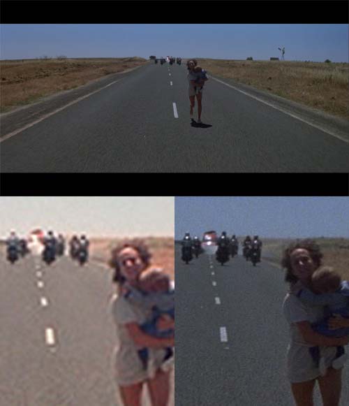 But, to be fair, it is a mixture. Much of the stunt work is first class, and makes you wonder whether the drivers survived. Goose's motorcycle speedo really does seem to be registering 180km/h shortly before his crash. At times the photography looks startlingly fresh and sharp, encompassing wide vistas of out-of-town Victoria.