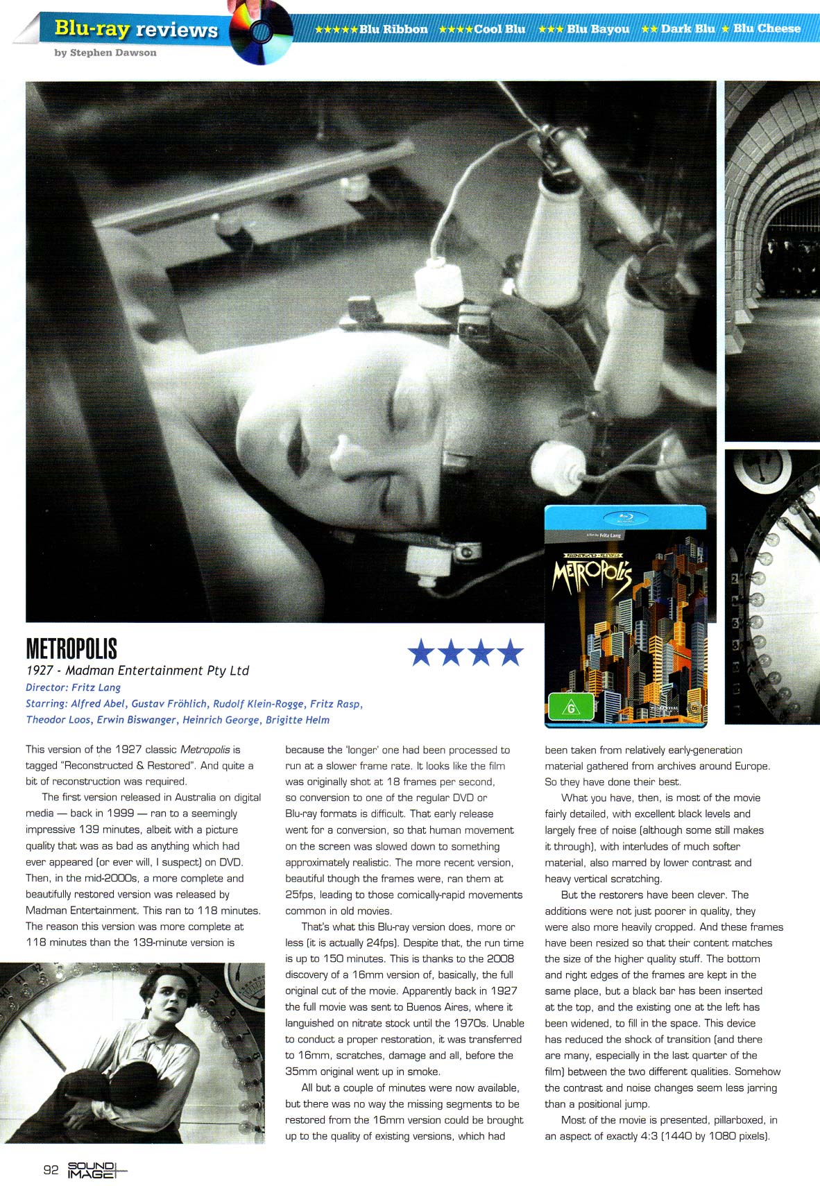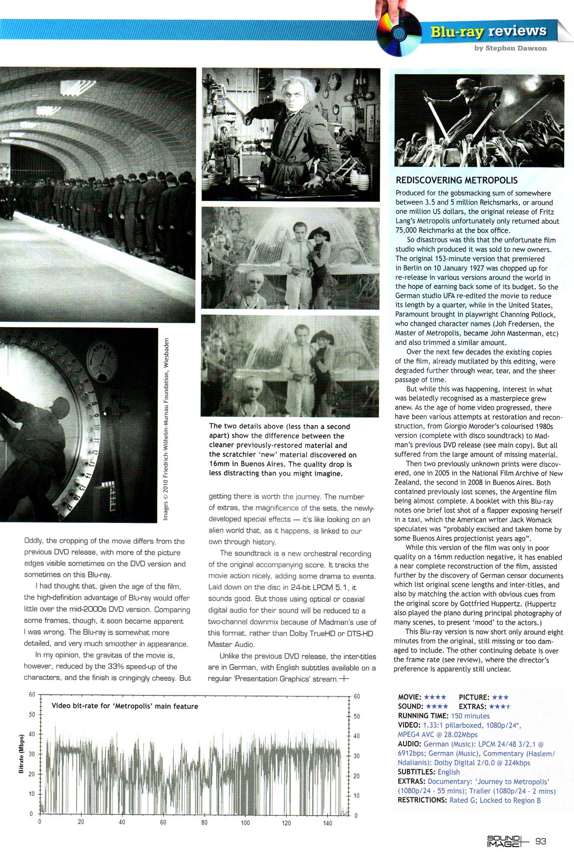That's what this Blu-ray version does too, more or less (it is actually 24fps). Despite that, the run time is up to 150 minutes. This is thanks to the 2008 discovery of a 16mm version of, basically, the full original cut of the movie. Apparently back in 1927 the full movie was sent to Buenos Aires. There it languished on nitrate stock until the 1970s. Unable to conduct a proper restoration, it was transferred to 16mm, scratches, damage and all, before the 35mm original went up in smoke.