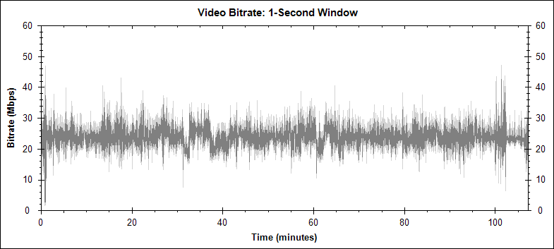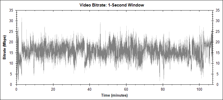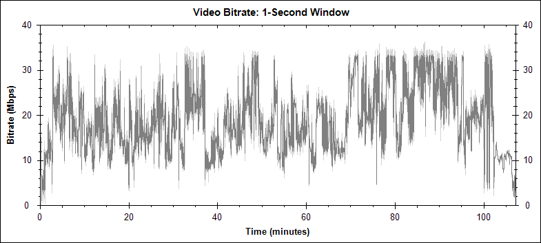 The following video bitrate graphs were generated by BDInfo 0.5.7. This is for the main video stream of the 3D version of the movie: